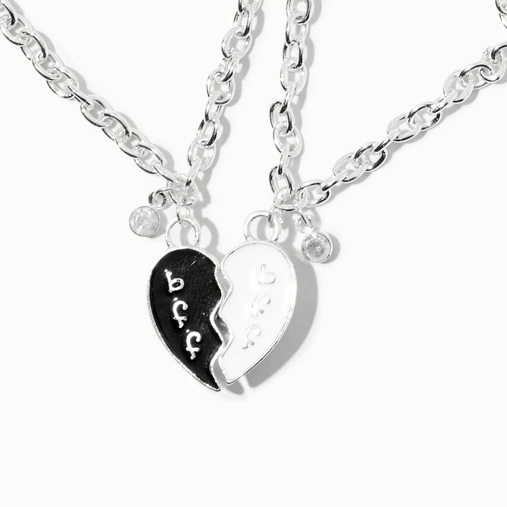 Show some love for your BFF with this best friend bracelet set. It includes twoΒ silver-tone charm bracelets that have split heart designs that connect together with a magnetic. Each charm has “BFF” on it in black and white enamel details.