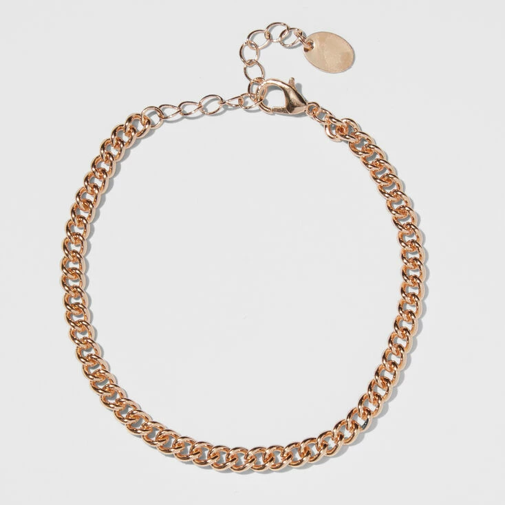 Chunky chain bracelets will never go out of style! This one features an interlocking design known as a curb style. Simple bracelets like this look great when stacked with other bracelets from your collection.
