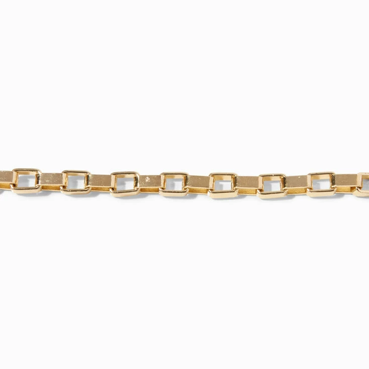 Start your arm party with this stunning piece. The gold-tone bracelet has an open box link chain design.
