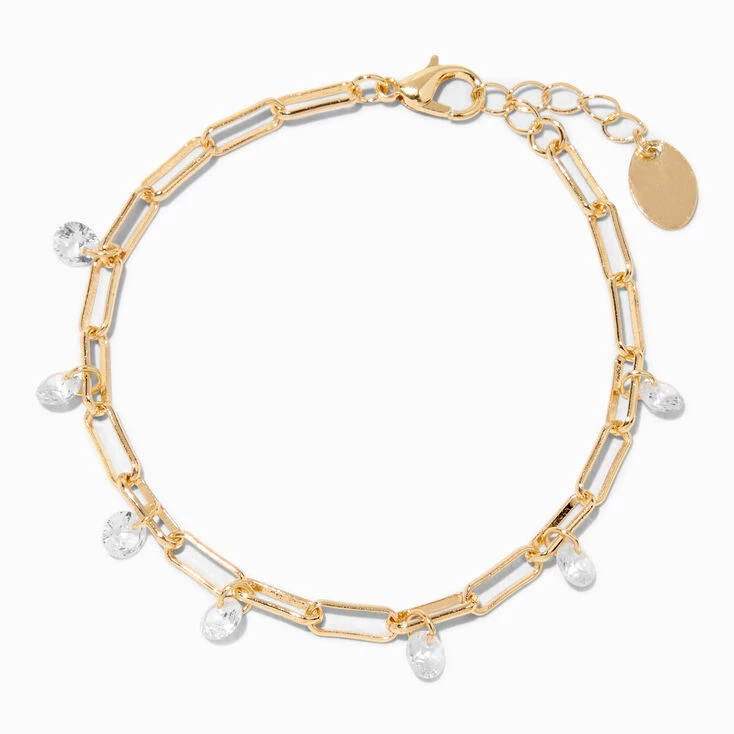 Wear this beautiful chain bracelet to any special occasion! The gold-tone paperclip-design bracelet has dangling cubic zirconia charms that will make the perfect accessory to your prom or event look.