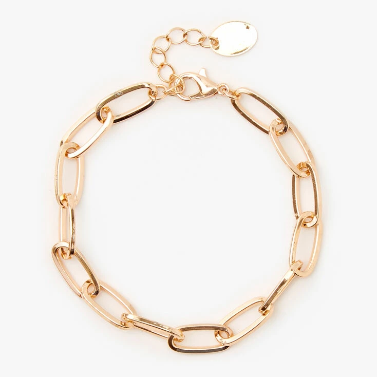 Perfect for layering or wearing on its own, this gold-tone chain bracelet features a paperclip link design that will look chic and trendy with any look!