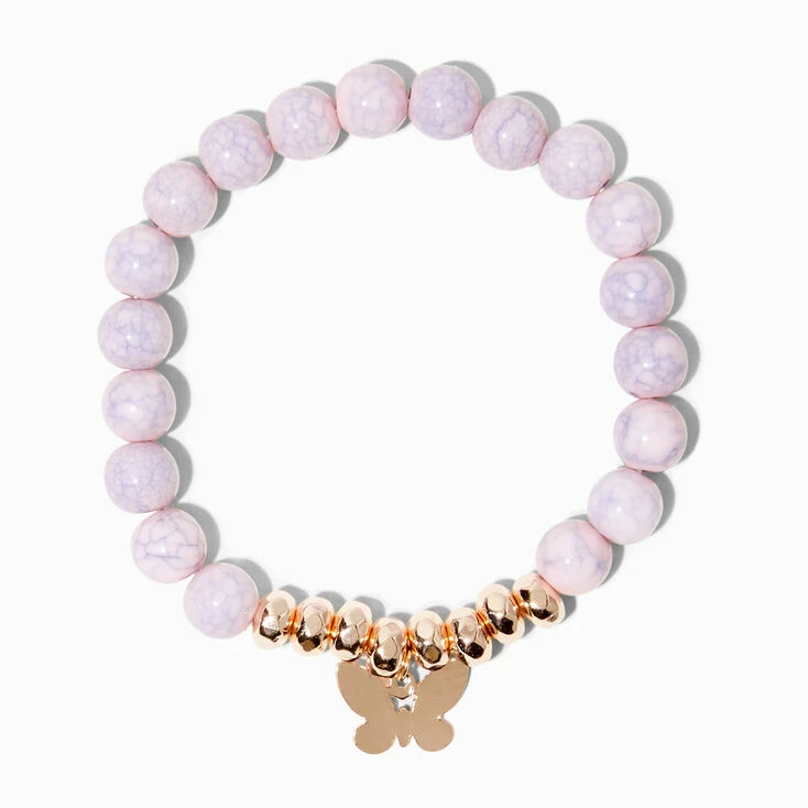 Add flutter style to your look with this stretch bracelet. The rose gold-tone bracelet has pink marble beads and a dangling butterfly charm. Wear this with your other butterfly jewelry for an on-theme style.