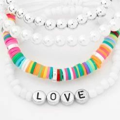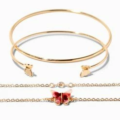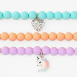 Be charmed by this four-piece bracelet set. One has a dainy blue butterfly charm, and another has light blue beads on an elastic cord. Wear one, two, three, or all four together!
