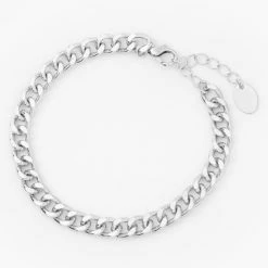 Chunky chain bracelets will never go out of style! This oneย features an interlocking design known as a Cuban or Curb style. Simple bracelets like this look great when stacked with other bracelets from your collection.