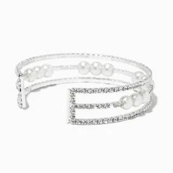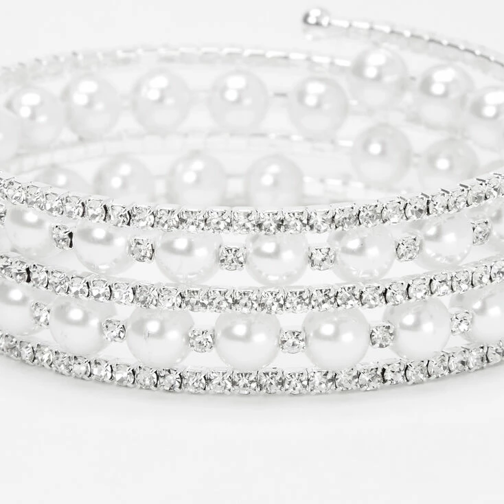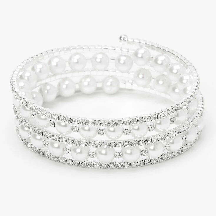 Keep calm and sparkle on with this bracelet! This glamorous yet classy coil wrap bracelet is embellished with glass rhinestones and ivory faux pearls.