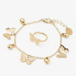 Filigree-inspired butterfly charms give this charm bracelet flutter style. The silver-tone curb chain has a row of five butterfly charms.