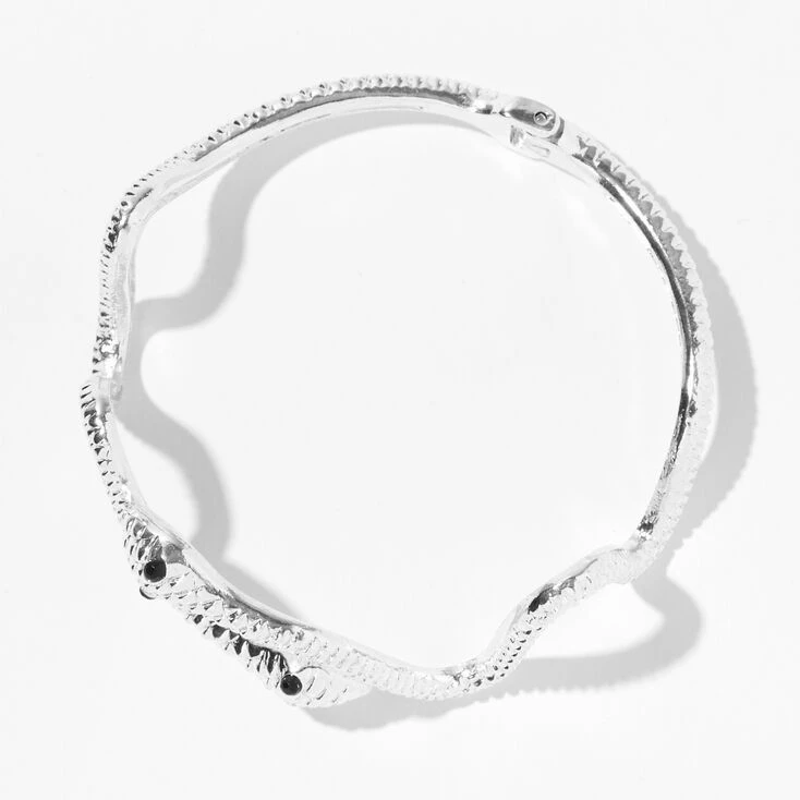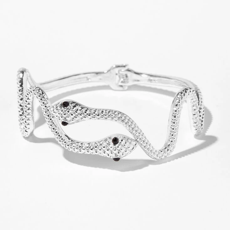 Add a stylish jewellery accessory to your look! This silver-tone cuff bracelet features a snake design with a textured detail and black faux crystals for eyes.