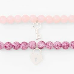 Coupon ???? Claire’s Silver Heart Lock & Key Beaded Stretch Bracelet – Blush Pink, 2 Pack ⭐